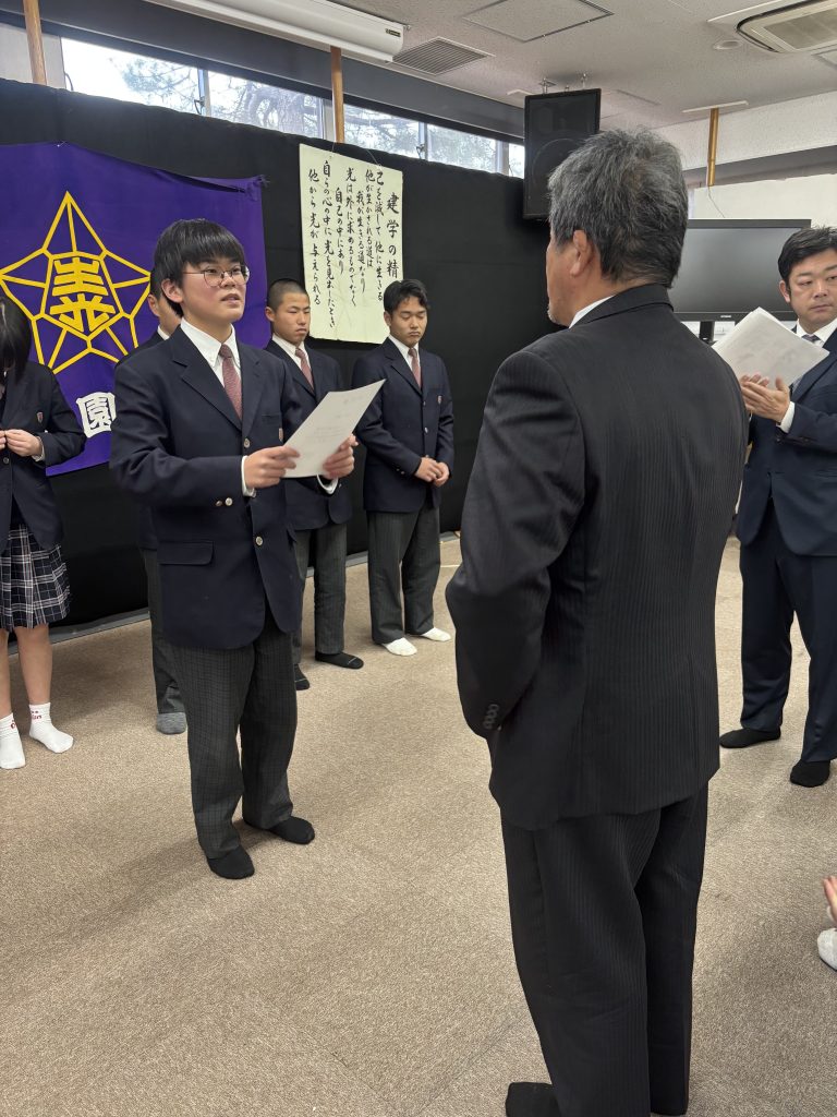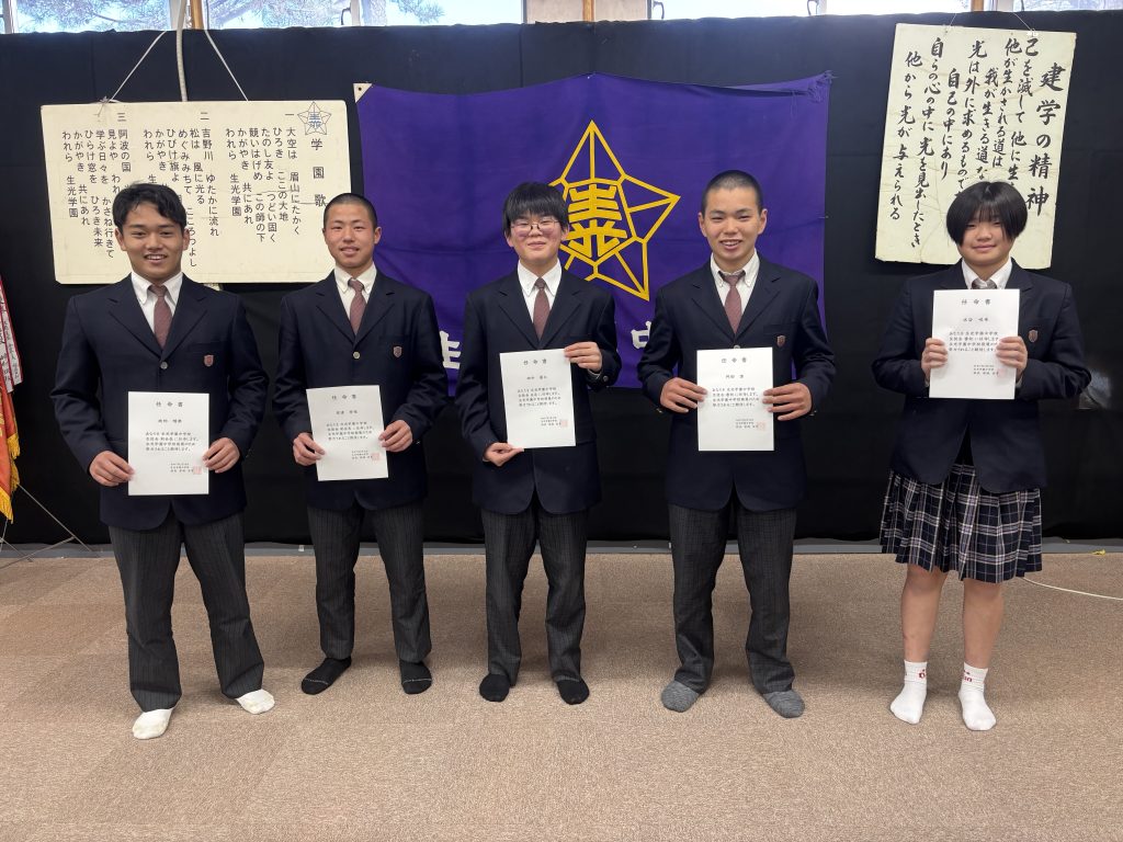 2月10日(火)生徒会役員改選の立ち合い演説会を開催し、選挙の結果次の5名が新役員に選出されました。