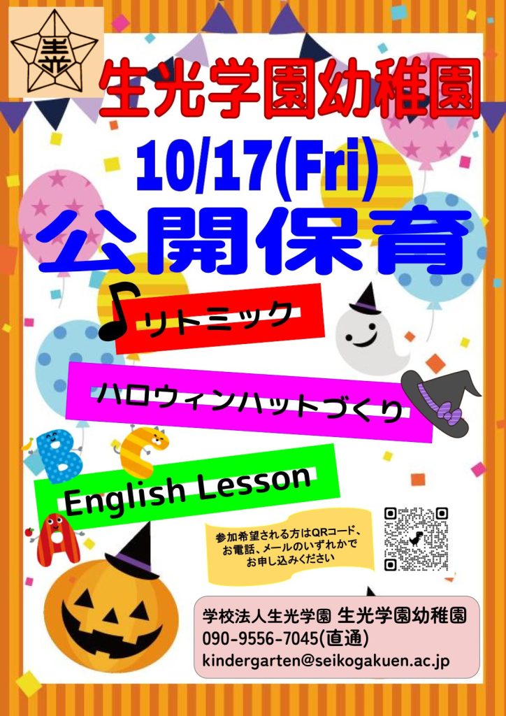 2025年10月17日(金) 生光学園幼稚園 第2回公開保育を開催いたします。